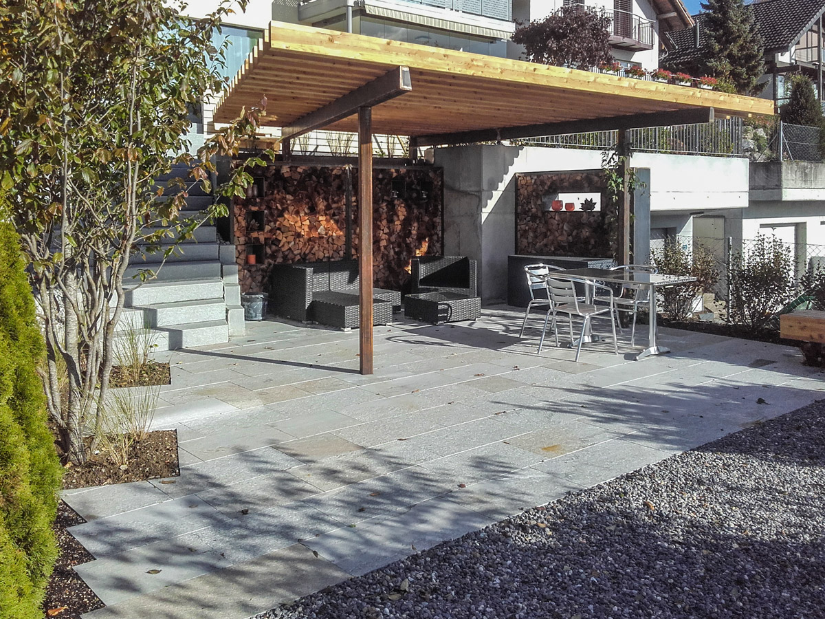 Sei es eine mediterrane Pergola aus Tessiner Gneis oder eine romantische Metallpergola –