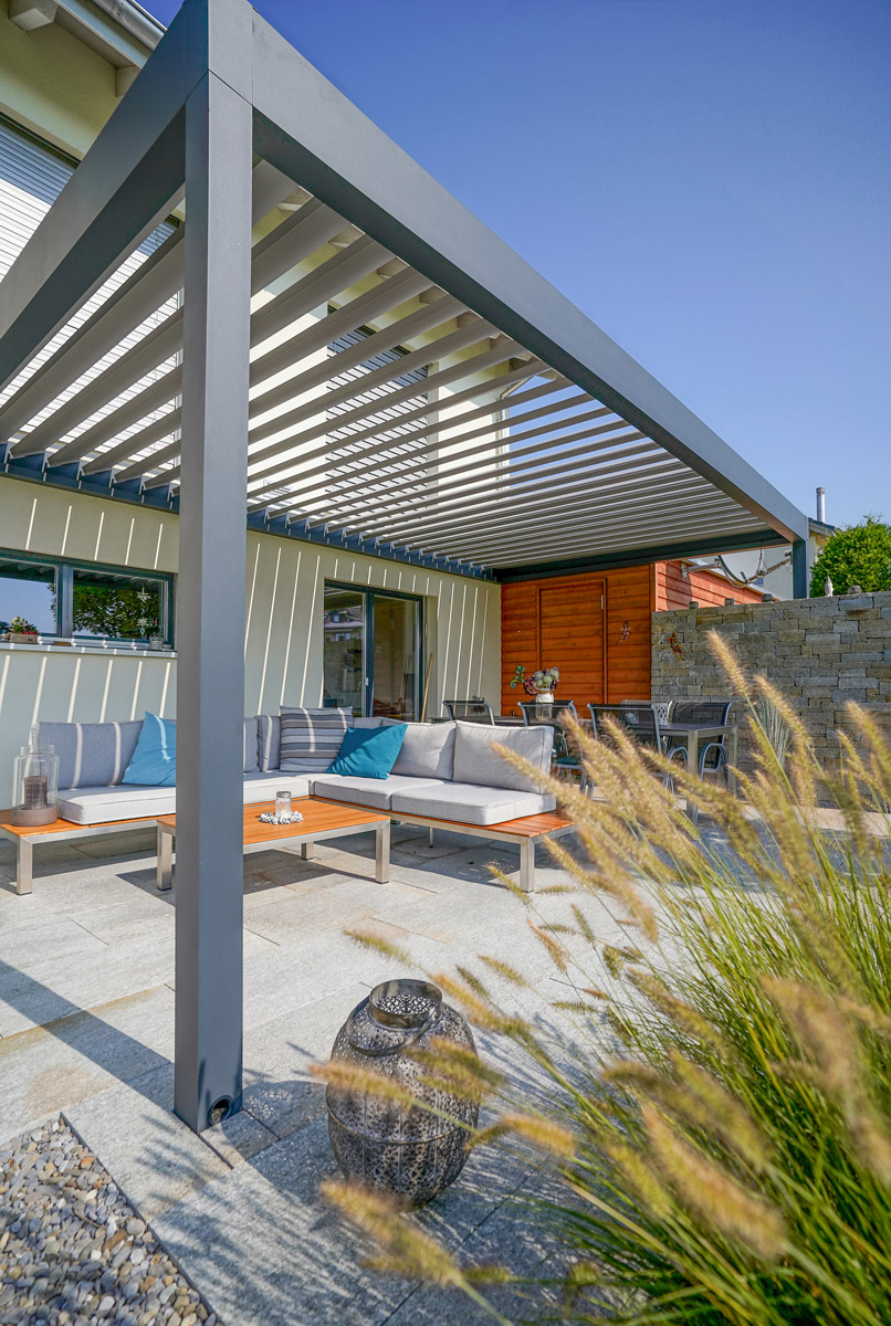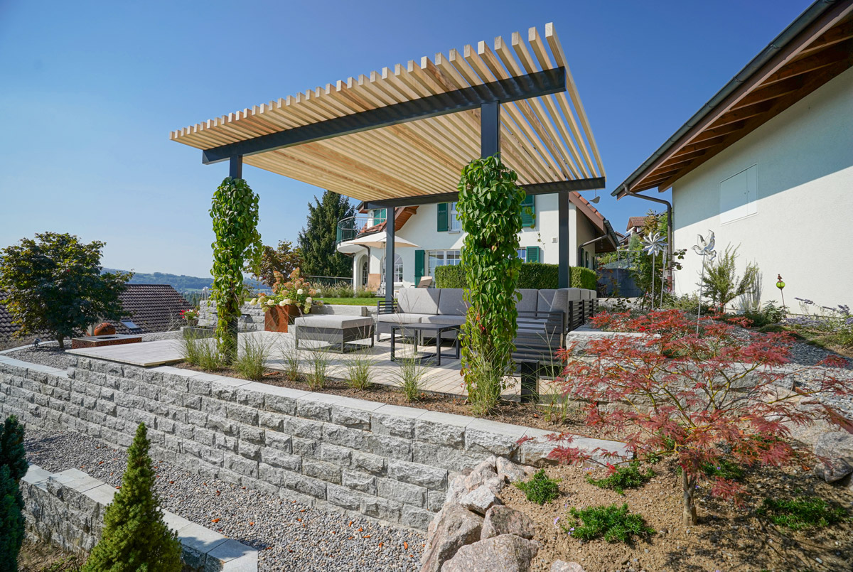 Gemütliches Flair verbreitet sich schnell wenn man unter einer Pergola heisse Sommertage entspannt im Schatten verbringt.
