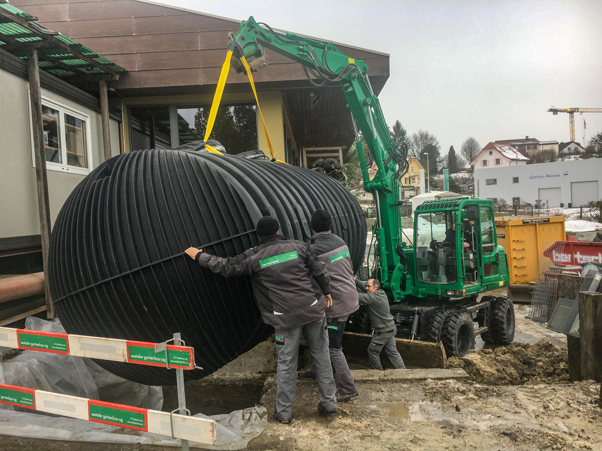 In der Schweiz beträgt der durchschnittliche Pro-Kopf-Verbrauch an Trinkwasser unglaubliche 300 Liter pro Tag. Rund die Hälfte davon wird für die Hygiene, also für Toilettenspülung und Duschen eingesetzt. Das kostbare und kostenlose Regenwasser in einem Tank zu sammeln, ist in vielerlei Hinsicht sinnvoll: Es ist ressourcenschonend, der Trinkwasserbedarf wird verringert. Ausserdem ist Regenwasser kalkarm und schont somit Geräte. Auch Pflanzen in Haus und Garten gedeihen viel besser, wenn sie mit dem weichen Regenwasser gegossen werden, dieses wird durch Versickerung und Verdunstung wieder dem Grundwasser zugeführt. Gerne beraten wir Sie, welche Möglichkeiten in Ihrer Gartenwelt zur Verfügung stehen.