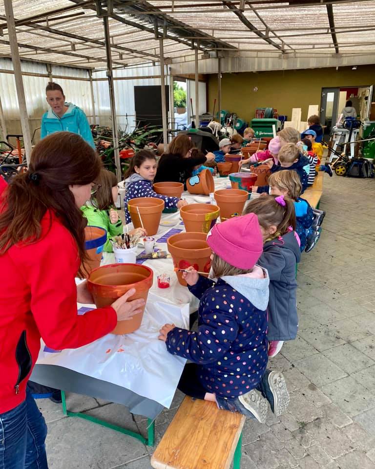 Gestern war der Ferien(s)pass Menziken/Burg bei uns zu Gast. 20 Kinder haben in den spannenden Beruf des Gärtners geschnuppert. Fleissig wurden Blumentöpfe angemalt, die dann später mit Kresse und Sonnenblumen angesät wurden.
