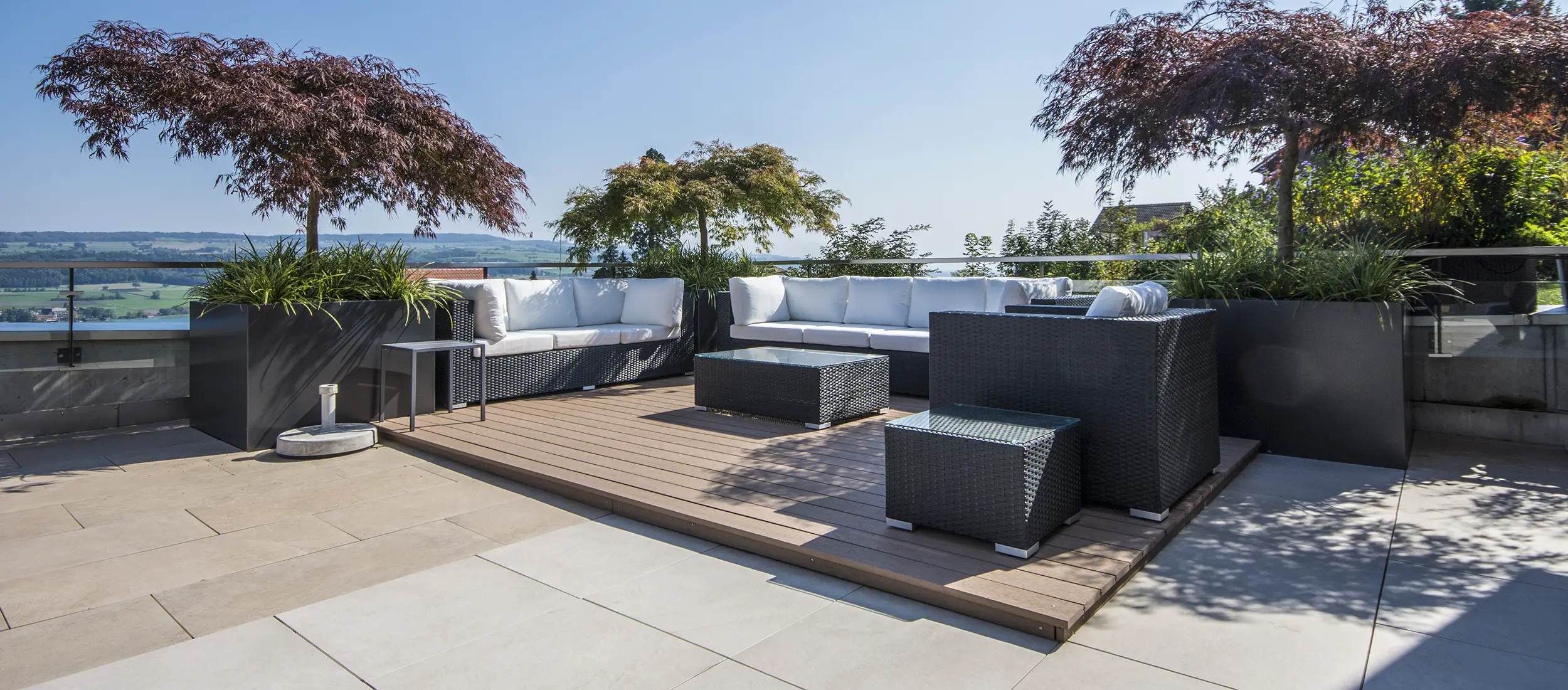 Die Gestaltung einer Terrasse oder eines Balkons ist sehr unterschiedlich: Geniessen Sie lieber die Zeit in einer eleganten Lounge oder ist Ihre Terrasse in erster Linie ein Ort, an dem Sie sich mit Gästen zu einem gemütlichen Zusammensein und einem feinen Essen treffen? Wir beraten Sie gerne, ob es um die Gestaltung mit Möbeln, mit gezielt platzierten Kunstwerken oder um einen tollen Flammengrill geht. Als leidenschaftliche Natur- und Gartenliebhaber wissen wir, was in Ihre Gartenwelt passt.