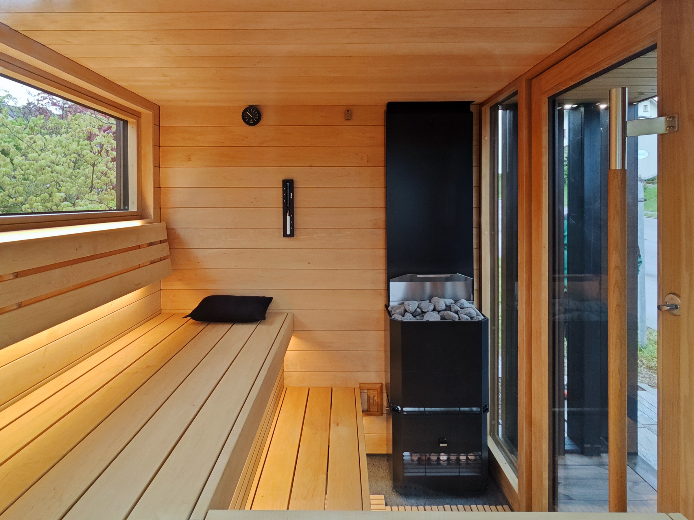 Möchten Sie Ihre Gartenwelt auch in den Herbst- und Wintertagen geniessen? Eine Aussensauna in moderner Gartengestaltung schafft ein privates Paradies, in dem Sie auch in der kalten Winterzeit entspannen und neue Energie tanken können. Geniessen Sie die wohlige Wärme und den Blick in den verschneiten Garten – ein unvergleichliches Wellness-Erlebnis. Die Kombination aus klaren Linien, natürlichen Materialien und innovativer Technik macht die Aussensauna zum Blickfang und zur Oase der Ruhe.