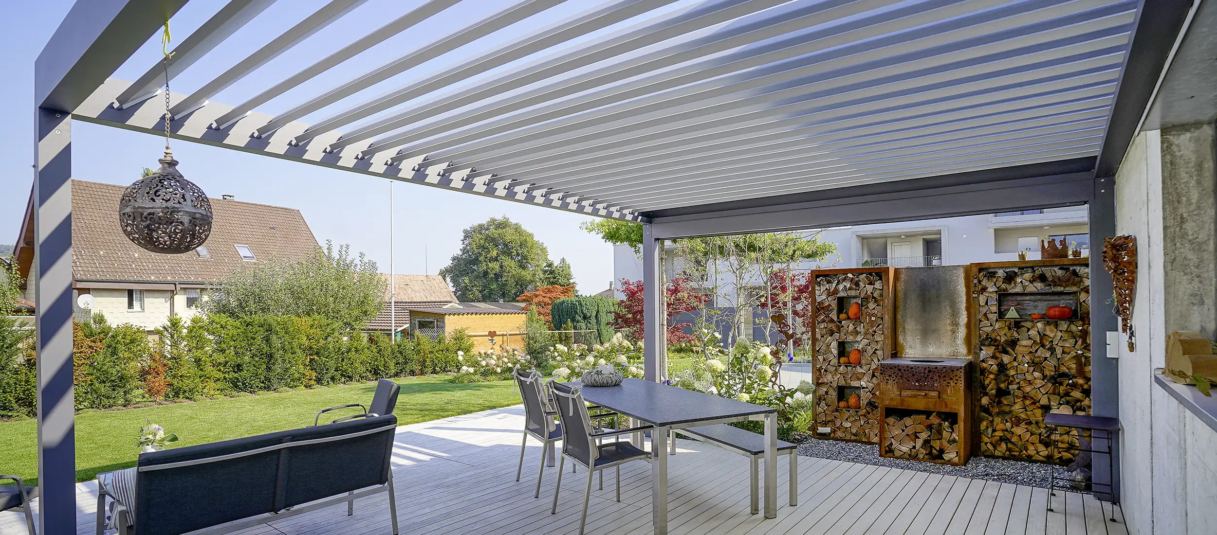 Gemütliches Flair verbreitet sich schnell wenn man unter einer Pergola heisse Sommertage entspannt im Schatten verbringt.
