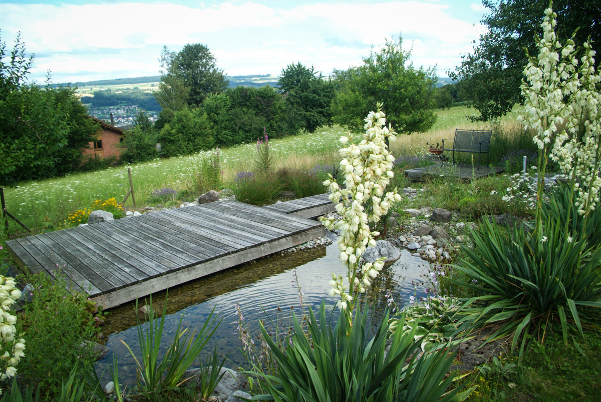 Naturgärten sind so vielfältig wie die Natur selbst: Magerwiesen, Wildstaudenbeete, Steinmauern, feuchte Ecken, Licht und Schatten wechseln sich ab. Die Artenvielfalt nimmt auch bei uns immer mehr ab – mit einem naturnahen Garten schafft man einen Gegenpol und bildet wieder Lebensraum für Tiere und Pflanzen, die sonst verschwinden, weil der Lebensraum nicht mehr Ihren Ansprüchen entspricht. Heimische Pflanzen bieten Insekten und Vögeln vom Frühjahr bis zum Spätherbst Nahrung und Unterschlupf. Und mit Asthaufen, Kompost und Totholz unterstützt und fördert man den natürlichen Kreislauf des Lebens.