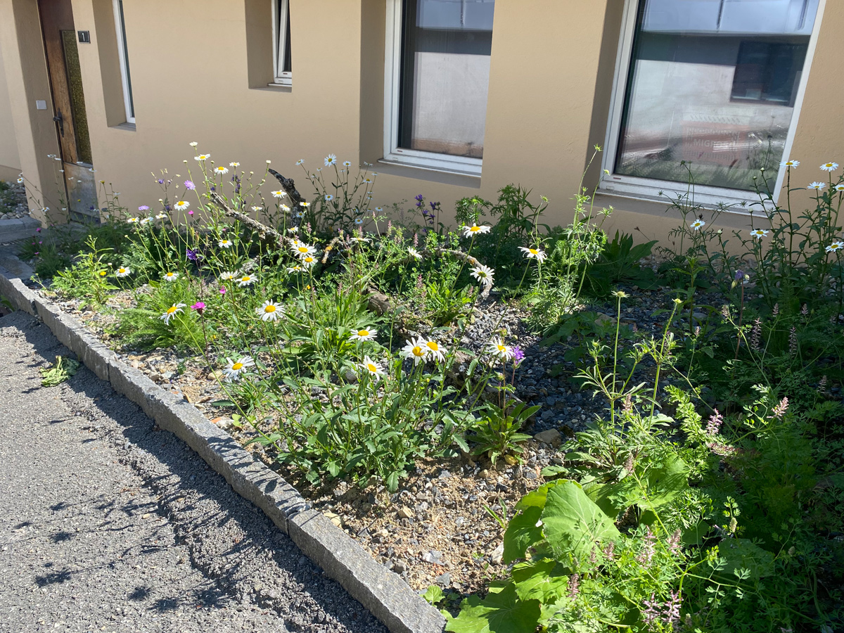 Rund um Privat- und Geschäftsliegenschaften gibt es viele Restflächen, Randstreifen und nicht nutzbare Böschungen, die mit Schotter befüllt oder mit Rasen bepflanzt wenig wertvoll für die Natur und auch noch pflegeaufwendig sind. Viel schöner wäre es doch, wenn diese kleinen Stücke wieder der Natur zurückgegeben werden und als blütenreiches Paradies oder wertvolle Ruderalfläche vielen Insekten und anderen Lebewesen einen kleinen, aber doch wichtigen Lebensraum oder Nahrungsstandort geben würden.
