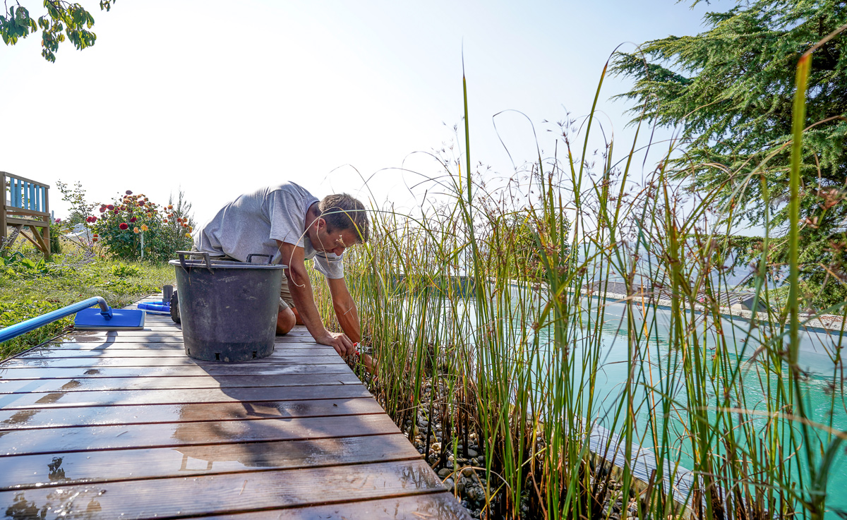 Pools, Biopools und Schwimmteiche verfügen über mehr oder weniger komplexe Technikanlagen. Unsere Spezialisten kennen diese in- und auswendig und wissen, wie sie bedient werden. Im Frühjahr in Betrieb nehmen, Störungen beheben, Reinigungsarbeiten, die Bepflanzung am Biopool pflegen, im Herbst wieder einwintern – Ihr Teich oder Pool ist bei uns in besten Händen und sieht jederzeit gepflegt aus. Sie können sich getrost aufs Baden und Geniessen konzentrieren.